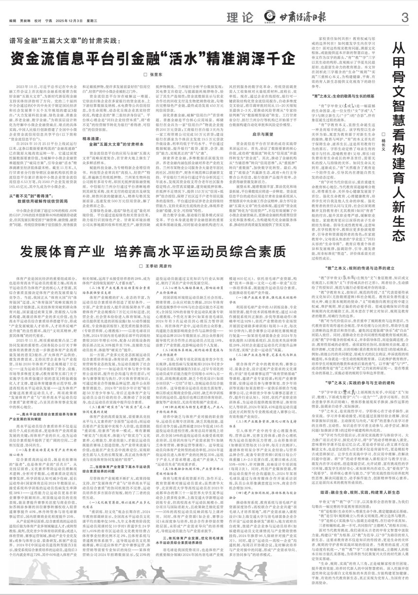 《从甲骨文智慧看构建育人新生态》原载《甘肃经济日报》2025年12月3日总第11099期第3版
